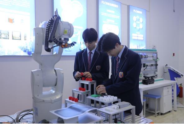新華電腦教育學生在工業(yè)機器人實訓教室進行操作學習 新華電腦教育供圖