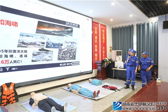 隨著天氣逐漸炎熱,防溺水安全教育又成為學校安全教育的頭等大事。為提高學生的水上安全意識和防溺水的能力,提高學生在暑期的自護能力,進一步強化防溺水安全教育,6月15日,河南新華電腦學院聯合鄭州市中原區藍天救援隊在河南新華電腦學院開展了防溺水安全知識講座,攜手打造安全新華校園,守護新華學生健康成長。