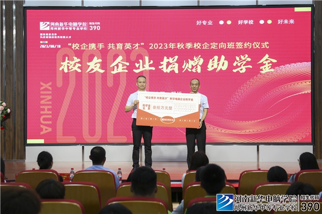 儀式上,河南新華電腦學(xué)院畢業(yè)校友、河南邁卓家居有限公司總經(jīng)理趙懷林向新華捐贈(zèng)30萬助學(xué)金,幫助更多有志青年圓夢(mèng)新華。