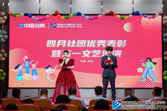 4月29日,河南新華電腦學院學術報告廳內氣氛熱烈,四月社團優秀表彰暨五一文藝匯演在此盛大舉行,為師生們獻上了一場精彩的藝術盛宴。