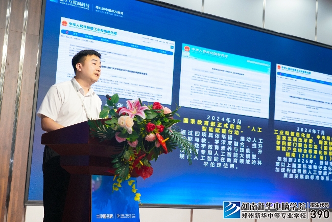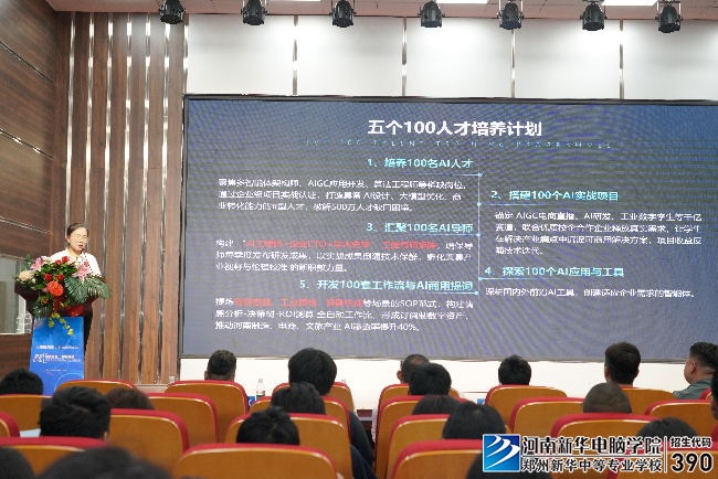 河南新華電腦學院院長吳鳳霞在致辭中表示,國家《新一代人工智能發展規劃》穩步推進,AI相關人才需求激增,此次新專業的發布和人才培養計劃的啟動,旨在培養既懂技術原理、又精行業實踐的“AI新青年”,是學院積極響應國家戰略、服務區域經濟發展的關鍵舉措。