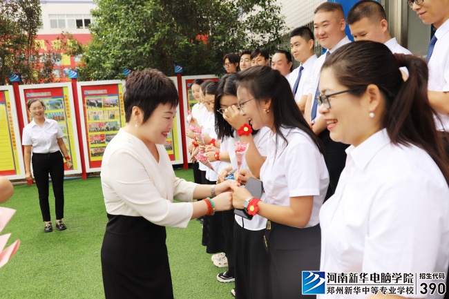 一大早,河南新華電腦學(xué)院院長(zhǎng)吳鳳霞及學(xué)院領(lǐng)導(dǎo)熱情將節(jié)日的鮮花送給每一位老師,吳院長(zhǎng)親切地向老師致以教師節(jié)的祝福,并把節(jié)日的紅包送到每一位老師的手中。手捧鮮花,老師們享受了一把明星的待遇,今天每一位老師看起來(lái)都格外的美!新華老師們笑容滿面,濃濃的情意讓節(jié)日的新華格外溫馨。