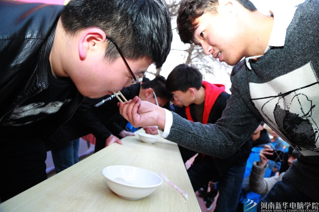 下午,元宵節(jié)活動一開始的猜燈謎贏大獎環(huán)節(jié)就把活動引向高潮,同學(xué)們?nèi)宄扇簲D在火紅的燈籠下面反復(fù)念著謎面、猜測著謎底,學(xué)院為同學(xué)們準(zhǔn)備的精美禮品十分誘人,同學(xué)們用自己的聰明才智撬開了燈謎,贏得了幸運,在不到兩個小時的時間內(nèi)數(shù)百份的精美禮品就被同學(xué)們一一收入囊中。而吃元宵比賽,吸引了同學(xué)們的積極參與,你夾我吃配合天衣無縫,不一會兒元宵大獎便派發(fā)完畢。同學(xué)們燦爛的笑臉像一個個跳動的音符,一同奏出了繽紛多彩的校園生活新華章。