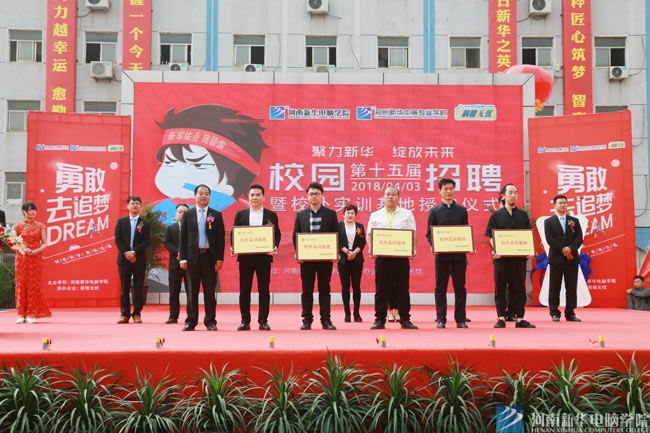 深化校企合作,提升學生就業競爭力,是河南新華與企業共同努力的目標。在此次招聘會上,還舉行了校外實訓基地授牌儀式,江蘇京東信息技術有限公司、河南百利文儀家具有限公司、河南龍記萬家裝飾工程有限公司、河南泉涌蓬勃通信技術服務有限公司、鄭州神美行文化傳播有限公司五家企業成為新華新一批校外實訓基地,新華學子的學習、實訓空間進一步擴展,也意味著新華學子的就業選擇道路將更為寬闊。
