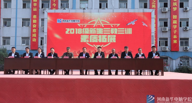 4月20日,河南新華電腦學院2018級春季新生三教三訓素質拓展匯演在學院綜合運動場隆重舉行,學院校區主任王洪蛟、市場部主任李國坤、教務處主任劉楓等學院領導、班主任及參訓教官領導出席了檢閱儀式并觀看了精彩的匯報表演。