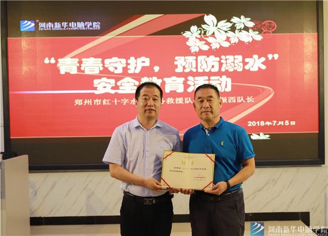 7月5日,在新華學生暑假即將來到之際,河南新華電腦學院邀請鄭州市紅十字水上義務救援隊隊長牛振西為新華學子普及水上自救、互救、自我防范知識,增強學生預防溺水意識,減少學生水上安全事故的發生。