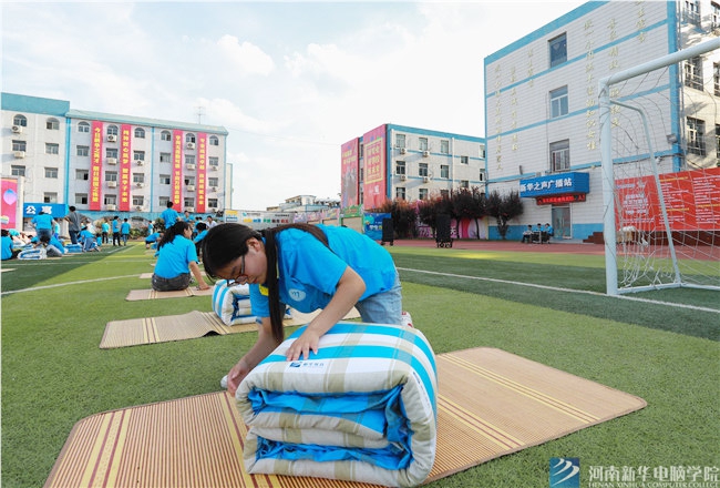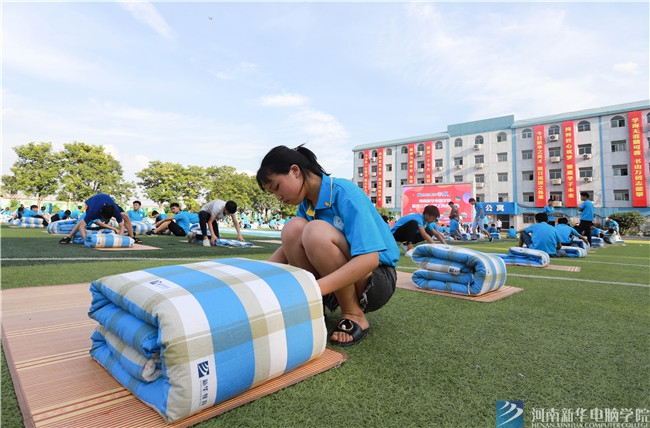 7月19下午,河南新華電腦學院綜合運動場上,一場別開生面的疊軍被大賽精彩上演。