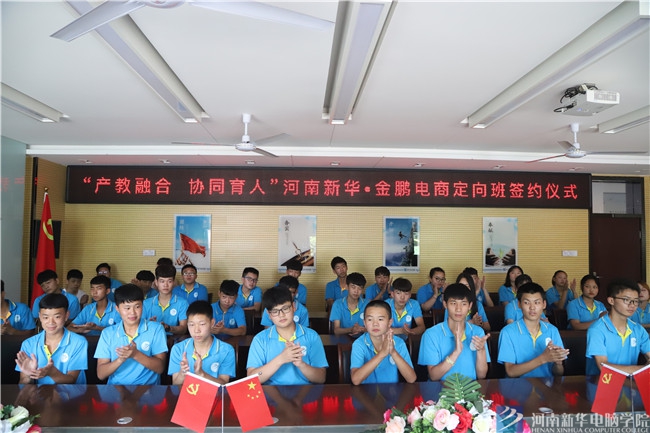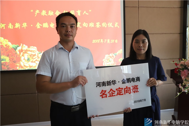 7月31日,河南新華電腦學院與鄭州金鵬電子商務有限公司簽署合作協議,校企聯手成立定向班培養人才,鄭州金鵬電子商務有限公司將成為河南新華電腦學院實訓就業基地。雙方將在人才培養、技術交流、資源共享等方面進行深度合作,實現共謀、共建、共享、共贏。