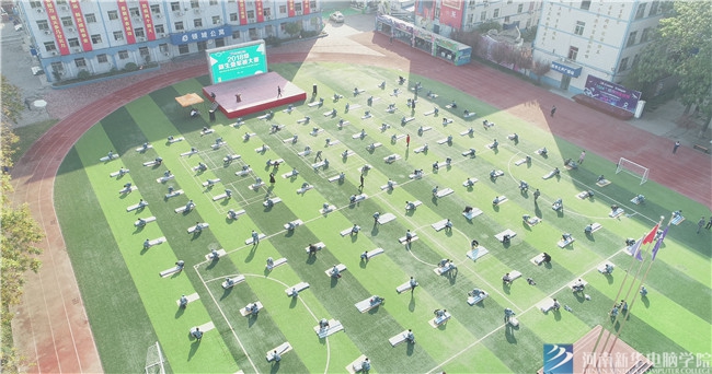 11月9日下午,河南新華電腦學院綜合運動場上,2018級秋季新生疊軍被大賽精彩上演。