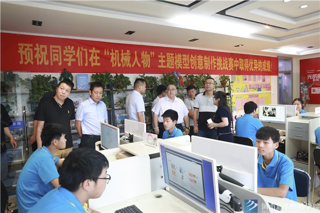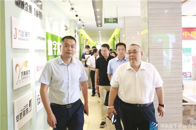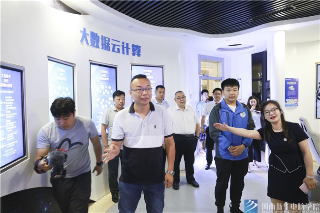 河南新華電腦學院院長俞南生陪同行業精英、業內專家參觀實訓基地