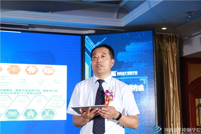 河南新華電腦學院院長助理王洪蛟從五大特色學院的行業背景、發展前景、核心內容、教學優勢、就業保障等方面進行了深入詳細的講解。