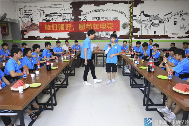 開班日當然少不了美食啦!學院餐廳的餐桌上擺上美食佳肴,香飄十里,新生們興奮雀躍。學生處主任對新生的到來表示了熱烈的歡迎,并希望學生們能夠了解自己專業,明確自己的發展方向、發展目標,希望學生們在進入新華后能夠準確的找到自己的角色定位、態度定位,盡快適應新的學習生活,能夠將過去的遺憾作為對自己將來的一種鞭策,珍惜未來的每一天。幽默風趣的語言博得在場新生們掌聲雷動,會場氣氛異常熱烈。